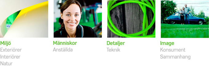 Dessa bilder måste kommunicera bilden av ett modernt, kompetent och service-inriktat företag. Positivism och social utåtriktning ska prägla dessa bilder.
