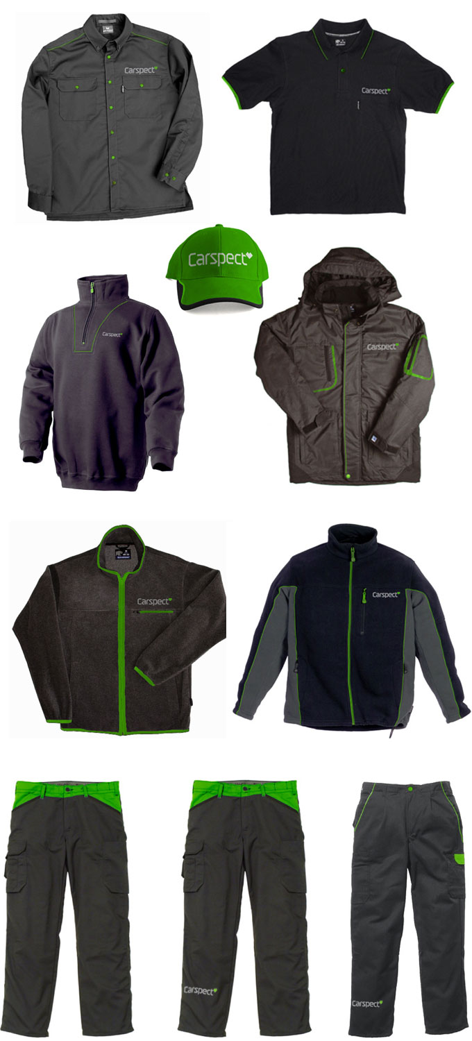 Nedan visas exempel på hur Carspects kläder kan se ut.