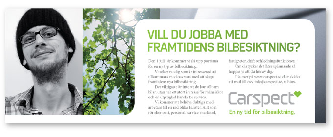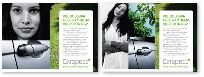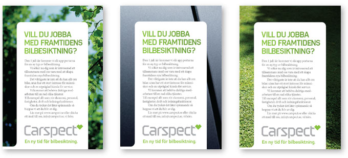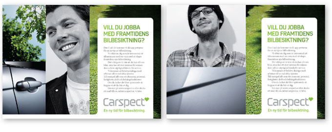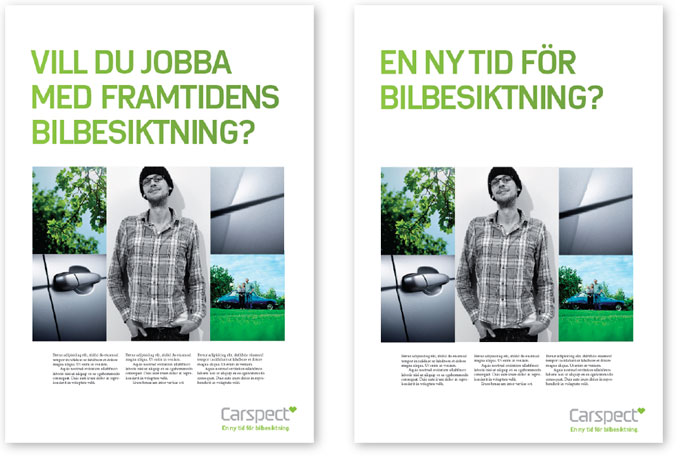 Nedan visas ett antal exempel på hur annonser för Carspect kan se ut, dessa går att anpassa efter behov.